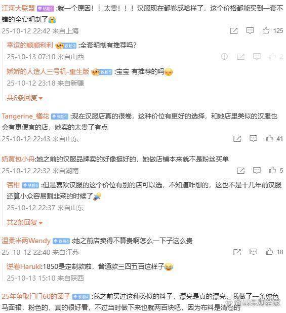 这是因为,很多汉服爱好者是看着这个行业从无到有、从小众到主流的。早期汉服多是爱好者自发研究、小规模制作,带着浓厚的“为爱发电”色彩。现在汉服商业化,品牌化,价格水涨船高,大家自然要问:涨价的理由是什么?